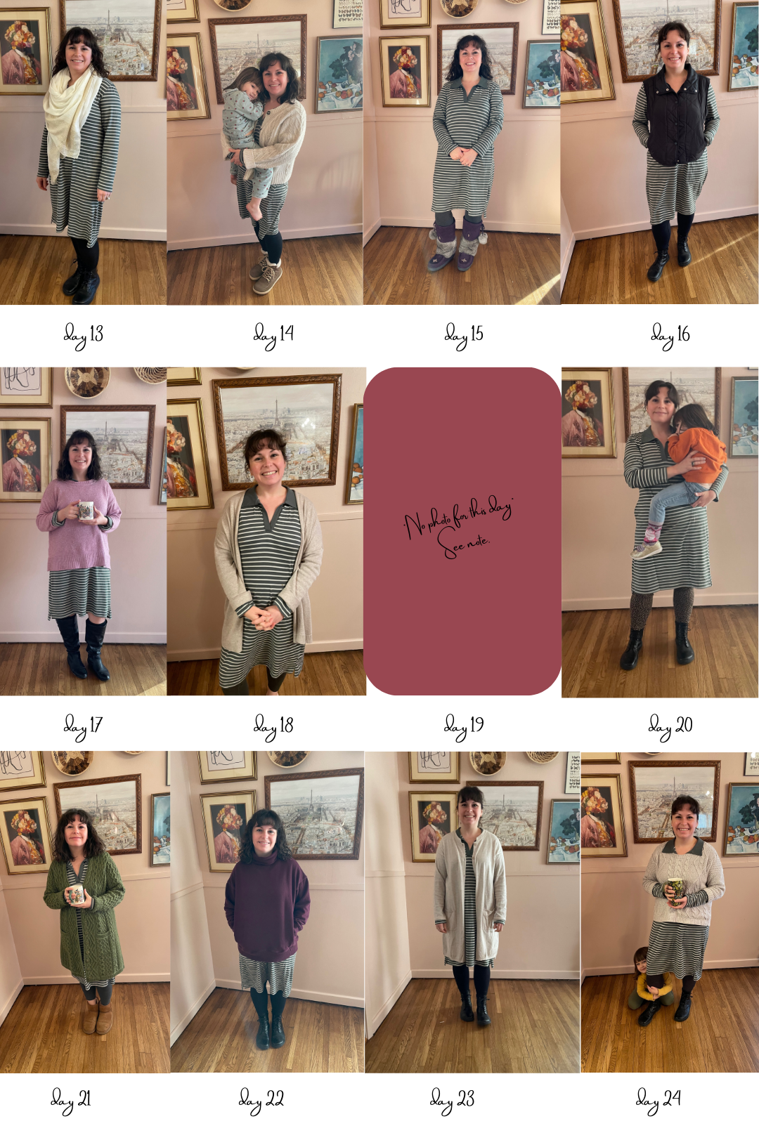 At the start of the challenge I was really trying to see which sweaters I could make work for layering. Some were more successful than others. The collar on the Bristol dress wasn’t the best for some sweaters. There were definitely some days I didn’t want to wear the dress, but for the most part, I didn’t mind.